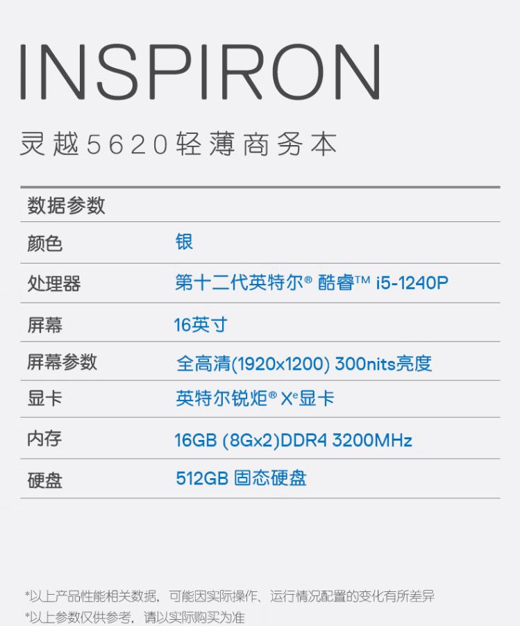 參數(shù) [品牌] DELL [型號] INS 5620-1605