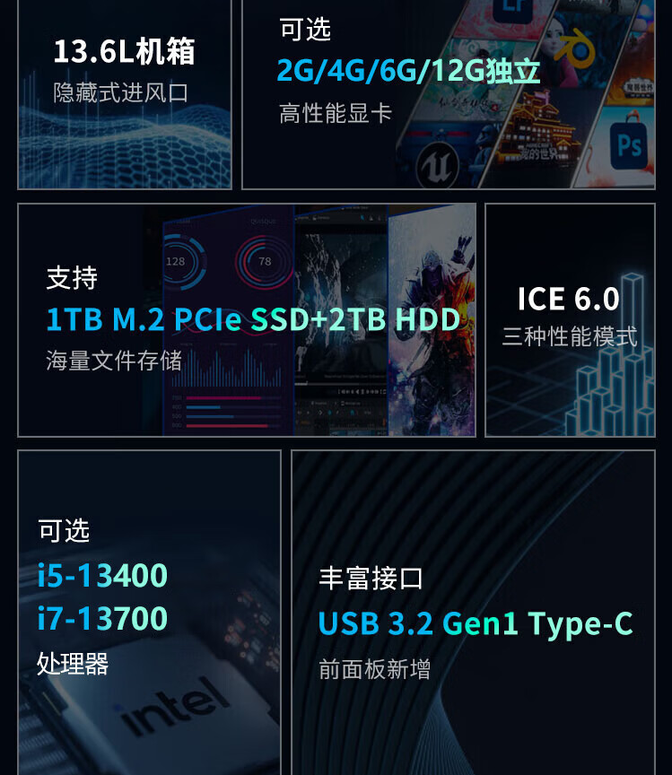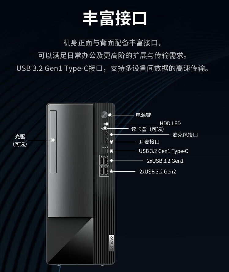 聯(lián)想M460臺式電腦i5-13400/8G內存/512G固態(tài)+23.8英寸高清顯示器