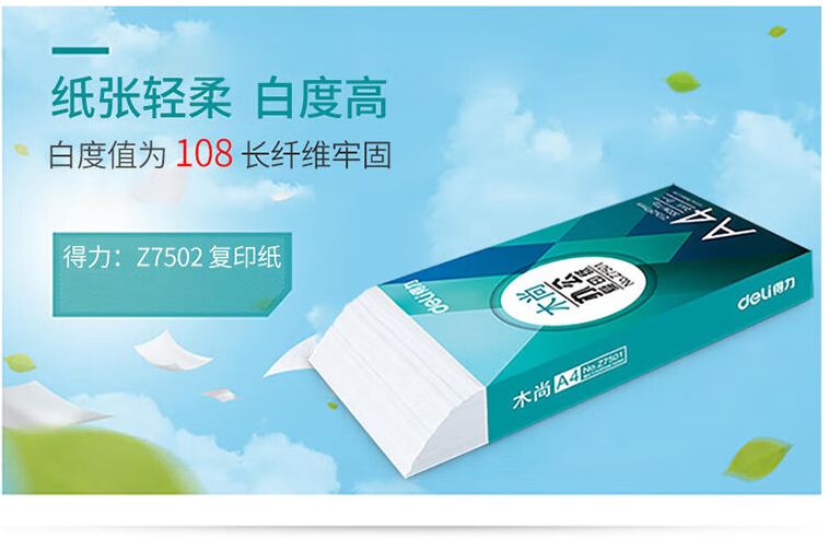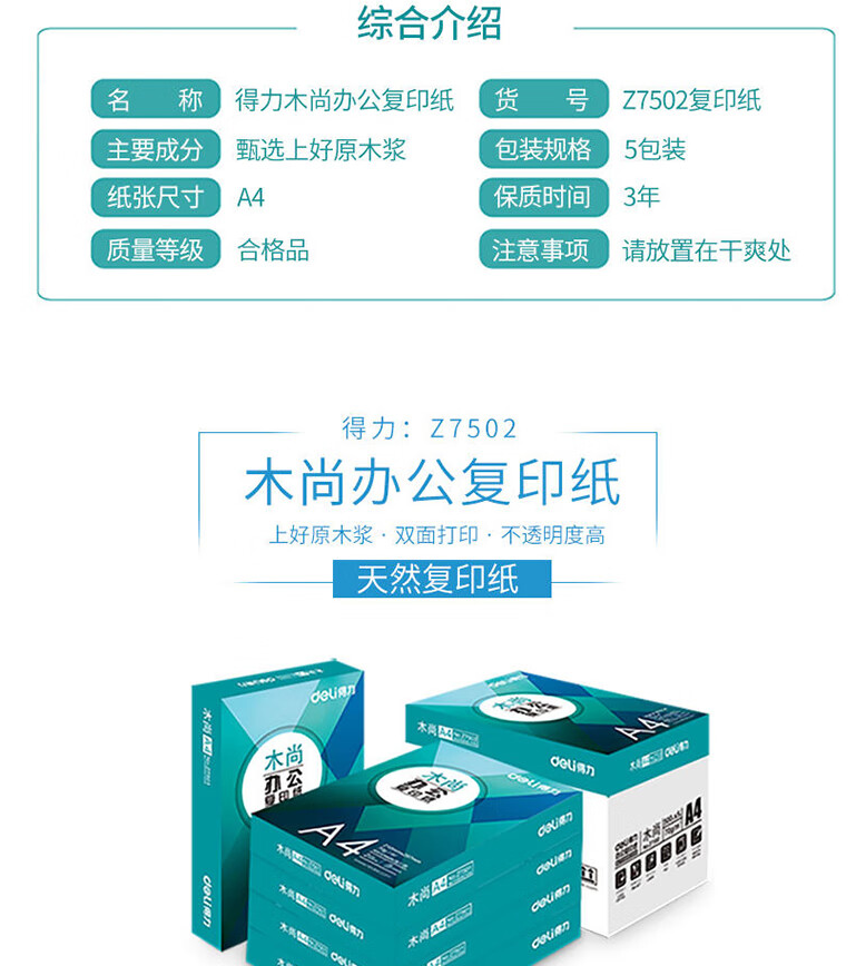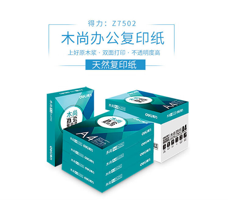 首頁 > 辦公耗材 > 復印紙 > 得力木尚 Z7502 A4復印紙 (5包裝)